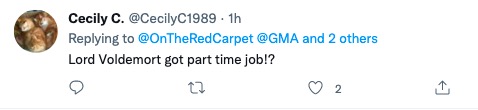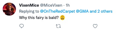 由於這版仙女與1940年迪士尼動畫版中金髮碧眼、膚色較淺的“藍仙女”形象大相徑庭,也沒有原著中的碧發,因此在社交平台引發熱議。有外國網民吐槽稱“伏地魔串戲了”。
