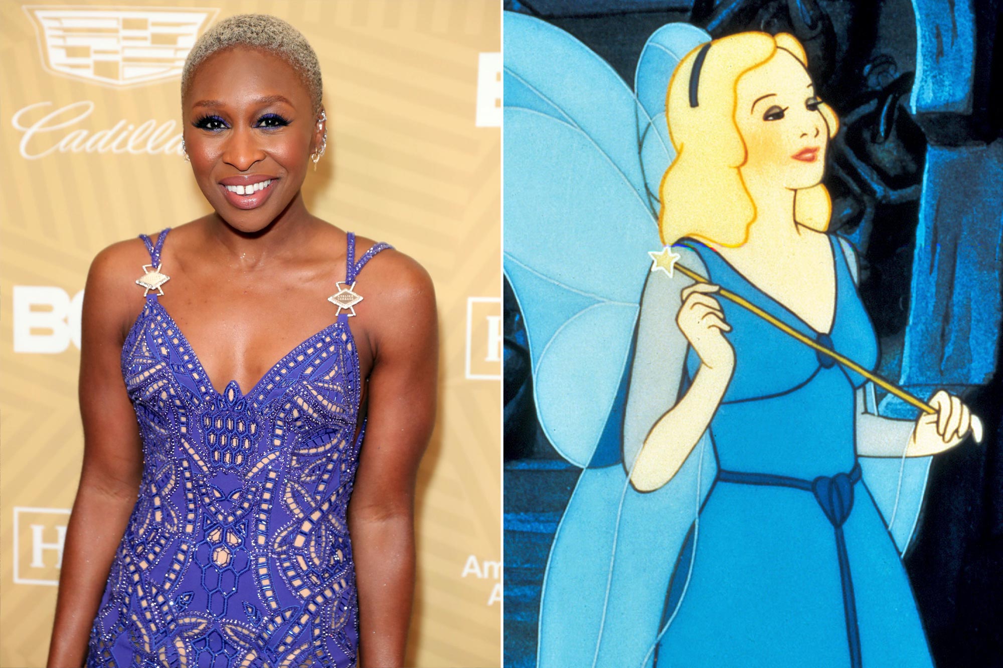 另一位揭開神秘面紗的是原版動畫中集美麗善良智慧於一身的“藍仙女”,英國女演員辛西婭·艾莉佛以光頭造型亮相,身着“藍仙女”標誌的閃閃發光的藍色裙子、揮舞着仙女棒。
