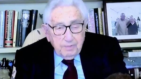 基辛格在達沃斯論壇上講話 圖片來源:《新聞週刊》
