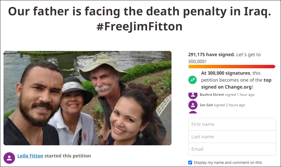 菲頓被捕後,他的家人也一直為此事奔走,發佈請願書,向英國外交部施壓,希望英國政府出面“解救”菲頓。但英國外交部表示會提供領事協助,但不會干涉伊拉克的司法程序。