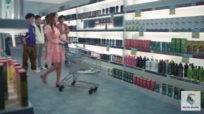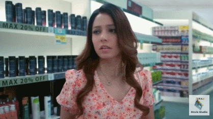 這讓女子憤怒又害怕地轉過身去看他們,結果發現他們在談論身體噴霧。隨後,一名男子從貨架上取下一瓶噴霧,並對着鏡頭展示這一商品。
