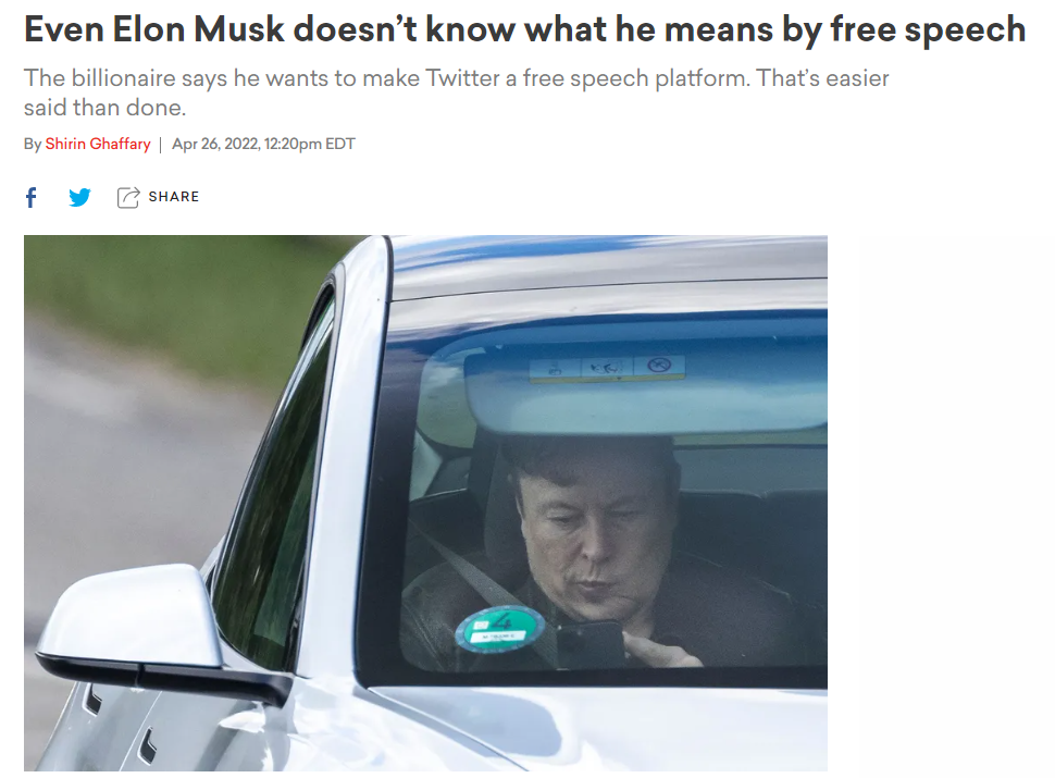 “馬斯克也不知道他説的言論自由是啥” VOX報道截圖