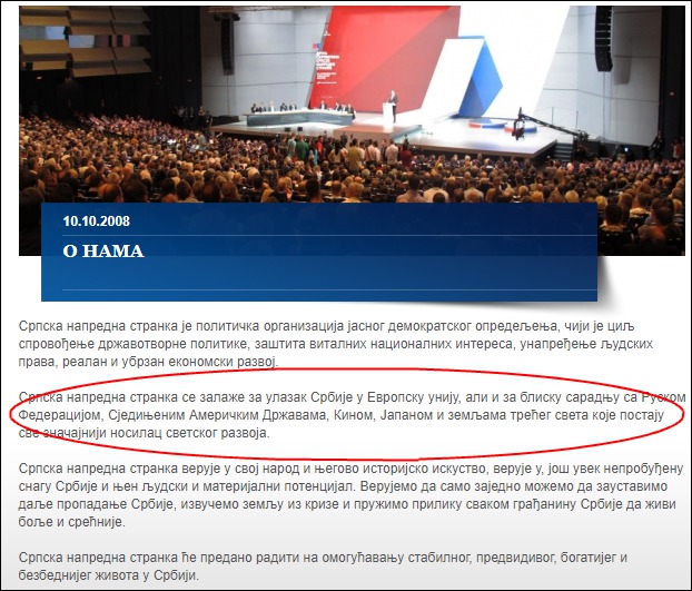 “歐盟”,一個讓塞爾維亞又愛、又恨、又糾結的名詞。若打開塞爾維亞執政黨的官網,在政黨簡介中有這樣一段話:“塞爾維亞進步黨致力於推動塞爾維亞加入歐盟,同時也致力於同俄羅斯聯邦、美國、中國、日本和第三世界國家密切合作,這些國家正成為世界發展日益重要的載體。”
