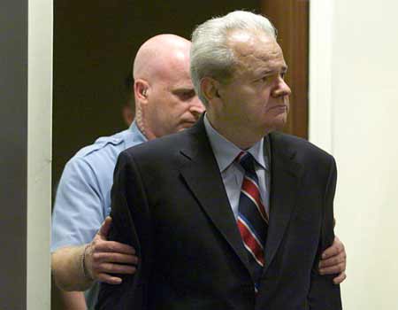 從上到下依次為前南聯盟總統米洛舍維奇、前波黑塞族共和國總統卡拉季奇、前波黑塞族共和國軍隊總司令姆拉迪奇