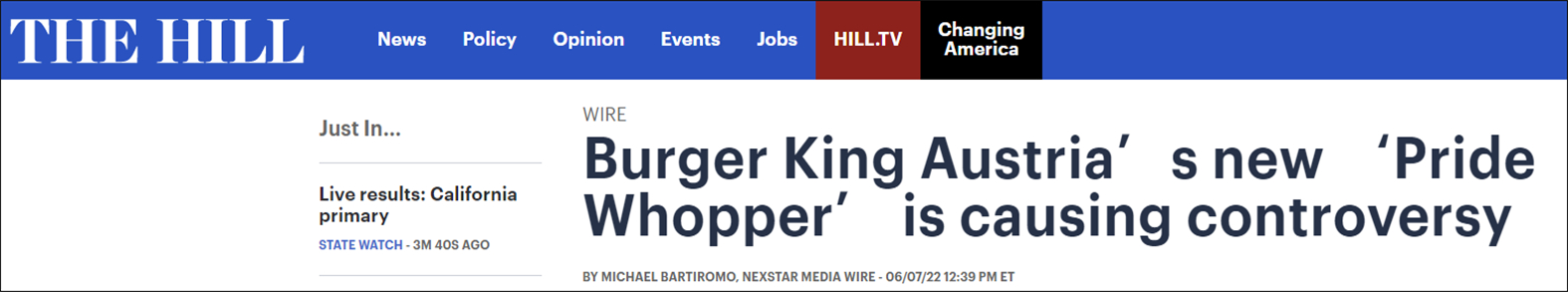 美國《國會山報》:奧地利漢堡王的新“驕傲皇堡”正在引起爭議