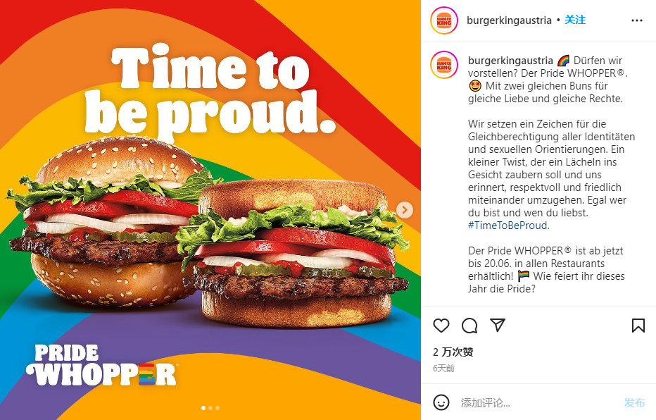 奧地利漢堡王推出限定“驕傲皇堡”支持LGBTQ,翻車了