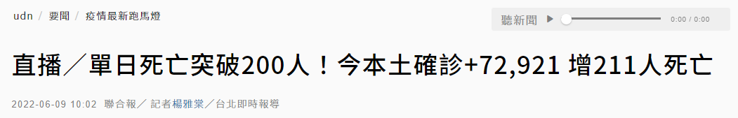 台疫情指揮中心指出,新增的211例本土病例死亡病例中有126名男性、85名女性,年齡介於10多歲至90多歲,皆屬重度感染病例,197例具有慢性病史、83例未接種新冠疫苗。
