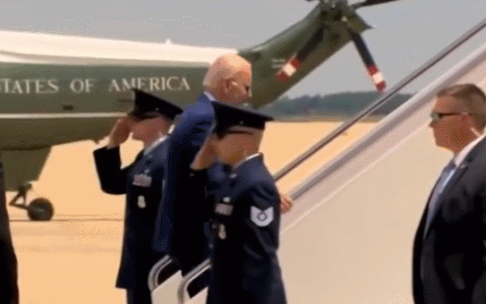 先是在登機時,拜登走得“跌跌撞撞”,他的步態不急促,可仍舊差點被絆倒,隨後他左手扶着樓梯保持住了平衡。