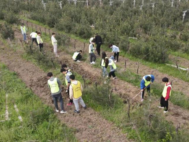 圖為西安交通工程學院學生在葡萄園中參與勞動實踐。受訪者供圖