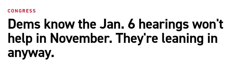 6月這一系列聲勢浩大的聽證會,距離民主黨局面不利的中期選舉只有5個月,但“政客”新聞網(politico)9日報道直言,眾議院民主黨人知道,即使他們對國會襲擊案的調查得出最確鑿的結論,也無法挽救他們在11月的多數席位。在美國通脹嚴重的大背景下,大部分選民更關心如何生存。