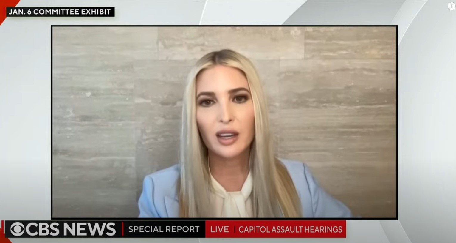 特朗普大女兒伊萬卡的視頻片段也出現在當天的聽證會上,她認為巴爾的觀點是決定性的,她告訴委員會,“我接受了他説的話。”