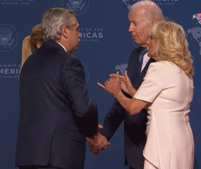 尷尬一幕又現,美洲峯會上拜登拉着阿根廷第一夫人的手久久不放