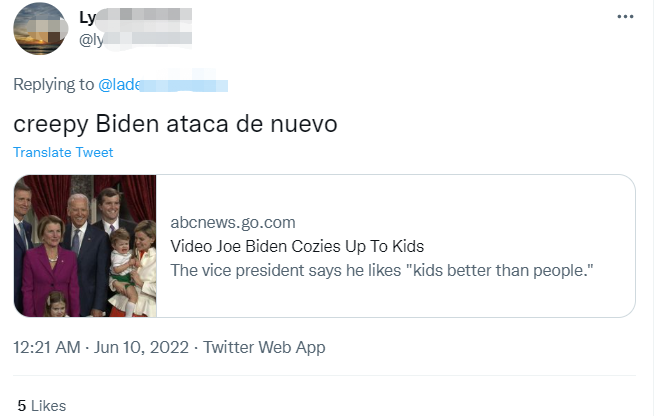 有外國網民放出拜登努力親近孩子的視頻,諷刺道:“令人毛骨悚然的拜登又來了。”