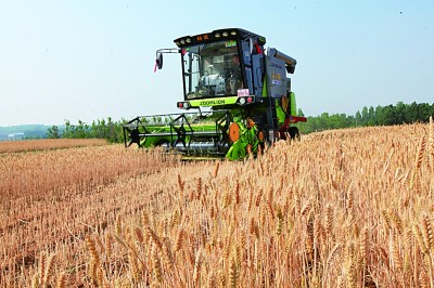 臨沂市平邑縣卞橋鎮薄板溝村田間,農民駕駛收割機在收割小麥。小滿節氣過後,平邑縣種植的小麥陸續成熟,農民抓緊農時,開鐮收割,確保顆粒歸倉。武紀全攝/光明圖片