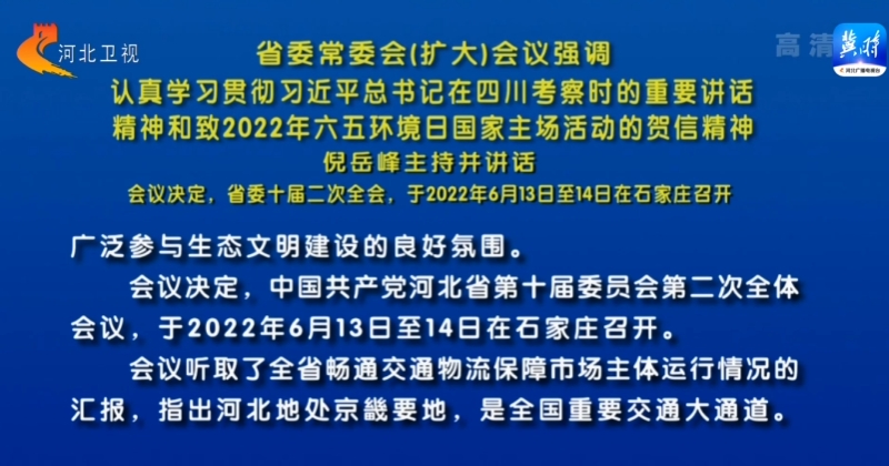 6月10日,河北省委常委會(擴大)會議召開,省委書記倪嶽峯主持並講話。