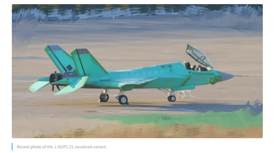“The Drive”網站同時發佈的據稱是中國海軍殲-35艦載戰鬥機的照片
