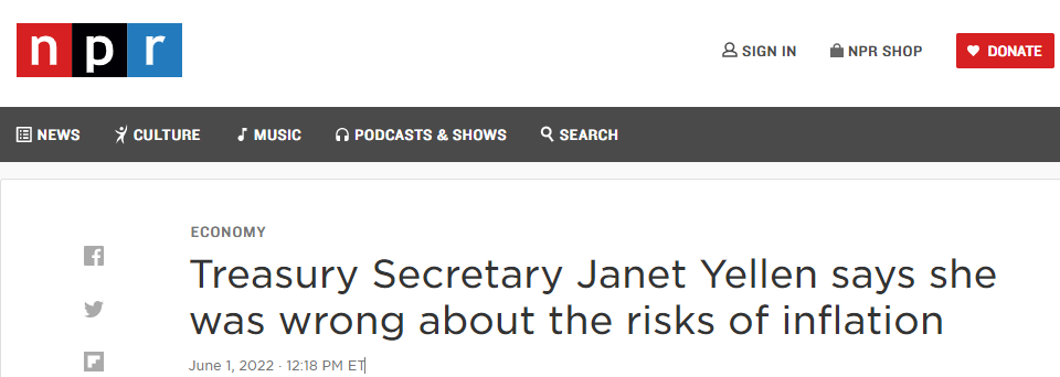 耶倫6月1承認,之前“暫時通脹論”錯了 NPR截圖