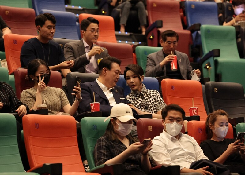 12日,韓國總統尹錫悦與妻子金建希在首爾一家影院看電影