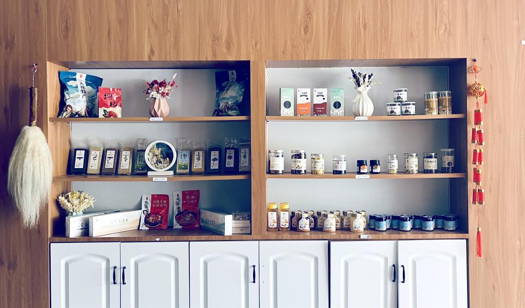 公司電商銷售展廳內,陳列着各式各樣的特色農產品。受訪者供圖