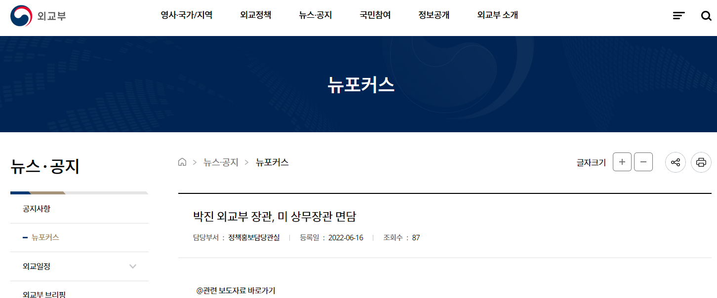 韓國外交部網站截圖