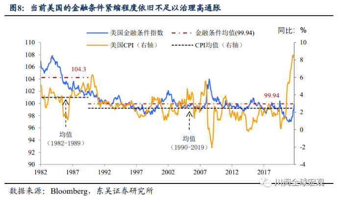 因為1994年實際通脹的壓力可控,使得格林斯潘治下的美聯儲能夠在看到經濟放緩跡象後,迅速在1995年2月後停止加息、並在7月開啓“預防式”降息。而當前的高通脹已經成為政策的主要矛盾,美聯儲在緊縮的道路將“騎虎難下”、難以轉向。