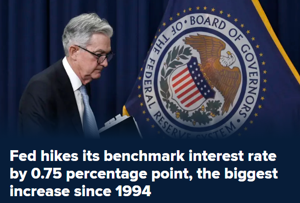 美聯儲週三(6月15日)宣佈將基準利率上調75個基點,來到1.50%-1.75%區間。這是美國1994年以來最大幅度的加息。