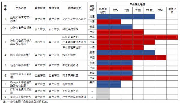 其中,僅有一款適應於心髒超聲造影增強劑的注射用全氟丙烷人血白蛋白微球已獲得NMPA批准上市,是國產獲批的首家凍幹氣體微球超聲造影增強劑,於2021年進入國家醫保目錄。