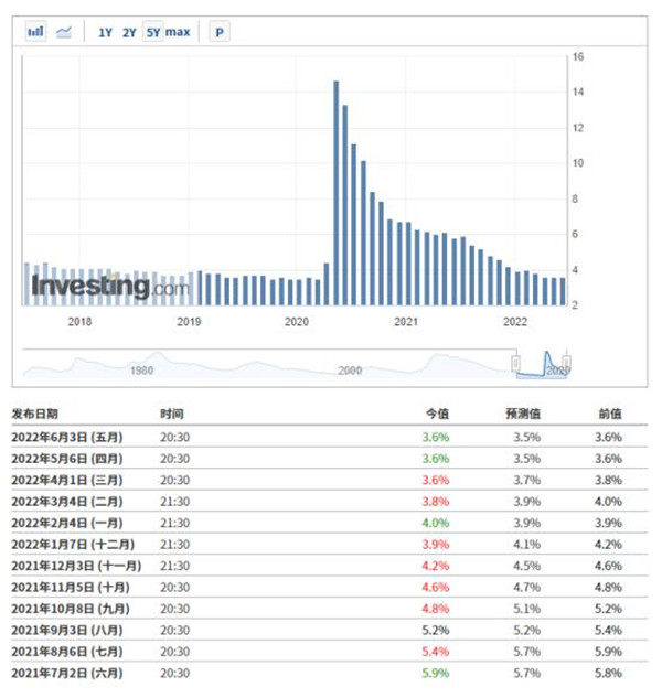 可能有人會有一個問題,雖然這個邏輯沒毛病,但是美國人都要吃飯和開車,總不能説大家都不加油和吃東西吧。這裏老何又要給大家解釋一個名詞——核心CPI了。美國的CPI分為兩類,我們傳統的消費者物價指數CPI,在此基礎上還有個超級版,叫做核心CPI。