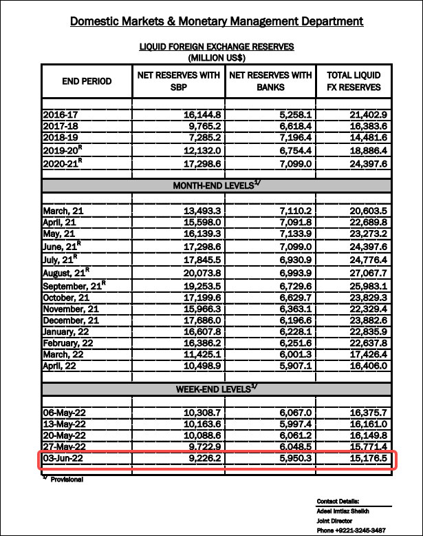 巴基斯坦外匯儲備,圖自巴基斯坦國家銀行網站。