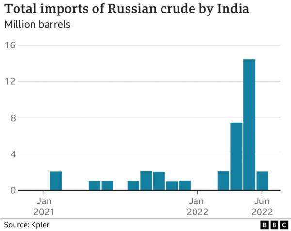 印度從俄羅斯進口原油量激增 數據源:Kpler