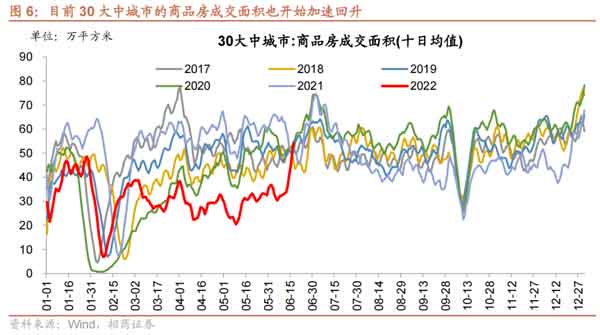此前,製造業和基建投資以及消費的復甦是市場的共識,唯獨擔心房地產拖累經濟,而目前30大中城市的商品房成交面積也開始加速回升,下半年單月轉正在望,將會為市場信心提供更大的恢復。
