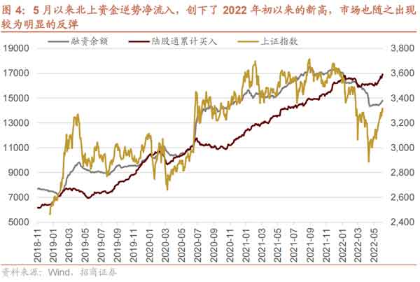 而中國毫無疑問是非G7體系中經濟體量最大, A股、港股、中概股、台股所構成的大中華區域資本市場,成為非歐美容量最大、最活躍,最有生命力的上市公司集合。因此,儘管5月來全球資本市場出現了巨大的震盪,按照過往經驗,應該會出現風險偏好降低,外資流出的局面,但是5月以來北上資金逆勢淨流入,並且創下了2022年初以來的新高。4月26日以來,北上資金淨買入A股850億元人民幣,市場也隨之出現較為明顯的反彈, 很多國內資金反而遺憾踏空。