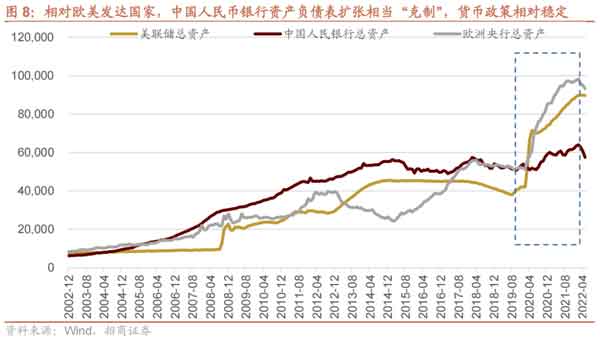在通脹穩定的背景下,中國貨幣政策也可以保持相對穩定,相比歐美央行“一腳油門,一腳剎車”的貨幣政策方式,中國貨幣政策的“以我為主”和穩健。當前,在通脹壓力下,歐美發達國家都開啓了激進的緊縮貨幣政策,而中國貨幣政策仍然能夠保持穩定,為當下資本市場提供了一個穩定的預期和環境。