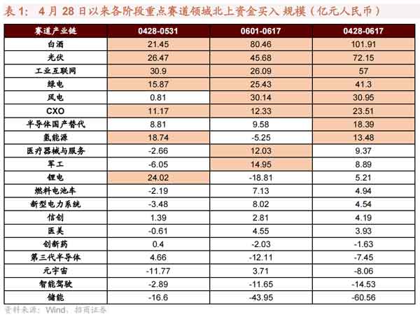 4月28日以來,北上資金加速買入光伏、綠電、風電、CXO、醫療器械及服務等板塊的標的,不過4月28日以來買入的最大規模還是白酒。