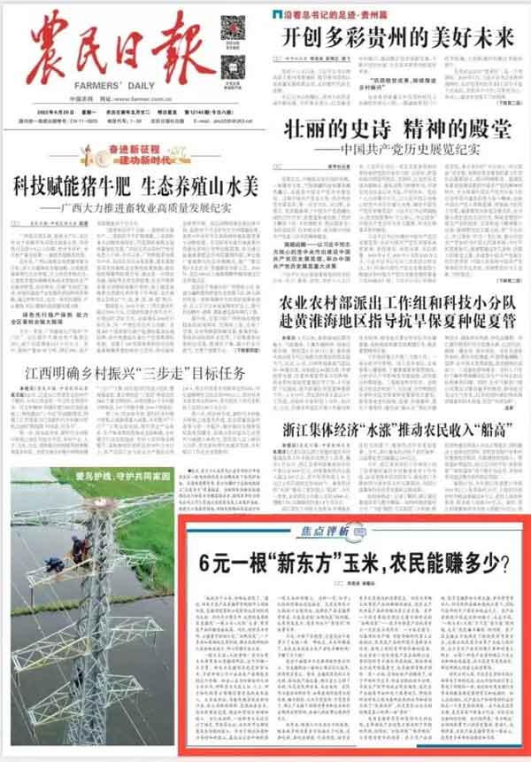 農民日報:6元一根“新東方”玉米,農民能賺多少?