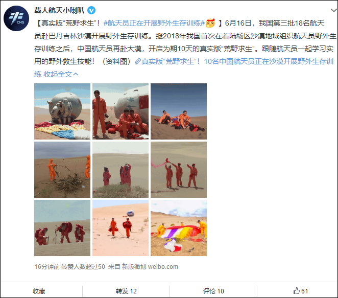 真實版“荒野求生”!第三批18名航天員赴巴丹吉林沙漠開展野外生存訓練 None 2022-06-20 6月16日,我國第三批18名航天員赴巴丹吉林沙漠開展野外生存訓練。繼2018年我國首次在着陸場區沙漠地域組織航天員野外生存訓練之後,中國航天員再赴大漠,開啓為期10天的真實版“荒野求生”。 (資料圖)