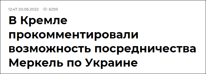 (觀察者網訊)據俄新社6月20日報道,俄羅斯總統新聞秘書佩斯科夫表示現在談論德國前總理默克爾是否能夠在俄羅斯和烏克蘭之間的談判中進行斡旋還為時過早,因為她已經辭職,不打算重返政壇。