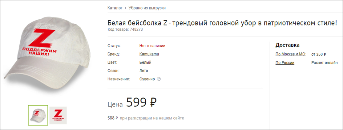 另外,俄羅斯的一些服飾上也印着愛國標語和字符。如有的襪子的外包裝是罐子,罐子上會寫着“為了勝利(Za Pobedu)”和“使命將被完成(Zadacha Budet Vipolnena)”等標語,還有棒球帽上印着大大的“Z”字符,以示支持俄羅斯。