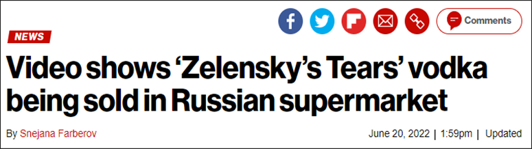 美媒:視頻顯示,“澤連斯基的眼淚”伏特加在俄羅斯超市出售