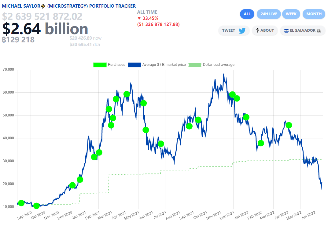 據追蹤該國比特幣資產的網站nayibtracker.com統計,薩爾瓦多的購幣總成本為1.05億美元(約7.01億元),平均購買價格近4.6萬美元/枚(約30.7萬元/枚)。按照今日(21日)最新幣價20483美元(約136857元)計算,薩爾瓦多手裏的比特幣已經浮虧約55.47%。