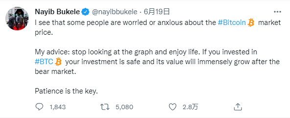 薩爾瓦多持有的比特幣浮虧超55%!總統:要有耐心,熊市後會大漲