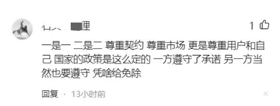 還有網友留言稱:“尊重契約,尊重市場,更是尊重用户和自己,國家政策是這麼定的,一方遵守了承諾,另一方當然要遵守。”