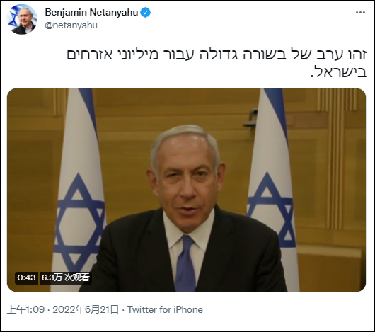 聽聞議會即將解散後,內塔尼亞胡在推特上發佈的一段視頻中説道,“這對數百萬以色列人來説是個好消息”。他説:“這個政府將把民族自豪感還給以色列公民,這樣你們就可以昂首挺胸地走在大街上。”