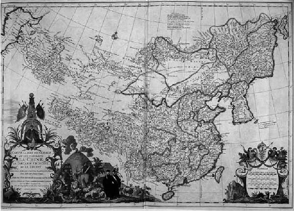 這裏必須説明的是,1941年希特勒進攻烏克蘭的目的並不完全是為了那裏的石油,希特勒以“神聖羅馬帝國”皇帝腓特烈一世的名字命名他的侵蘇戰爭計劃(即“巴巴羅薩計劃”),説明其真正目的主要是為了歐洲的統一。因為烏克蘭是歐洲,特別是東歐的斬腰之地。蘇聯控制了烏克蘭,就控制了黑海東岸的羅馬尼亞和保加利亞,並由此大大減少了這些國家對西歐的向心力。而沒有這些國家對西歐的向心力,歐洲的統一是無法完成的。明乎此,也就明白了為什麼英國人對在摧毀蘇聯戰役中立了頭功的撒切爾夫人的逝世反應冷淡,因為打倒蘇聯的結果是使歐洲大陸有了統一的空間,而與亞洲大陸統一對日本的影響一樣,歐洲大陸統一的結果必然造成英國在歐洲從中心轉向邊緣;明乎此,也就明白了為什麼為歐洲統一做出重大貢獻的德國首相默克爾對俄國在克里米亞的行動如此痛心疾首——因為俄國向烏克蘭西方和黑海南方的推進,將使即將完成的歐洲統一進程功敗垂成。為此,默克爾在習近平主席訪歐期間贈送中國一幅據説“是1735年德國繪製的第一幅精確的中國地圖”(參閲圖4),[19]其意在於將中國注意力引向中國北境,由此減輕俄羅斯在烏克蘭對歐洲統一的戰略壓力——這當然是一廂情願的想法。