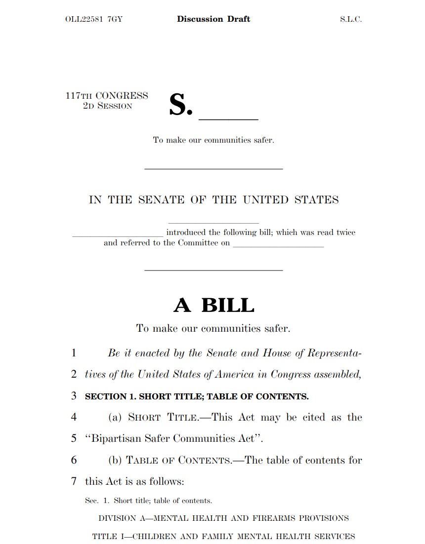 一週多之前,來自兩黨的20名參議員(每黨各10名)簽署了一項框架協議,該協議約定了適度的槍支限制,以及約150億美元的聯邦資金,用於心理健康計劃和學校的安全升級(上月,得州一所小學發生10年來最嚴重的大規模校園槍擊案)。這份協議轉化為了週二公佈的法案的部分內容。