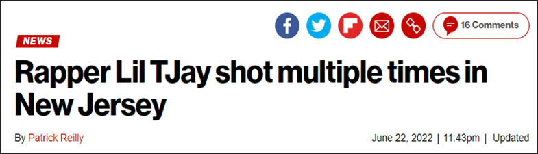 《紐約郵報》:説唱歌手利·傑伊在新澤西州身中數槍