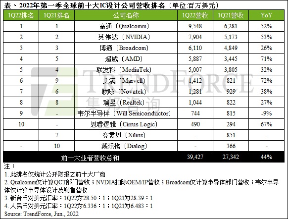 報道還援引集邦諮詢的另一份報告指出,2022年第一季度,中國企業首次進入了世界十大半導體設計公司之列(上海韋爾),而韓國企業甚至連名都沒有。