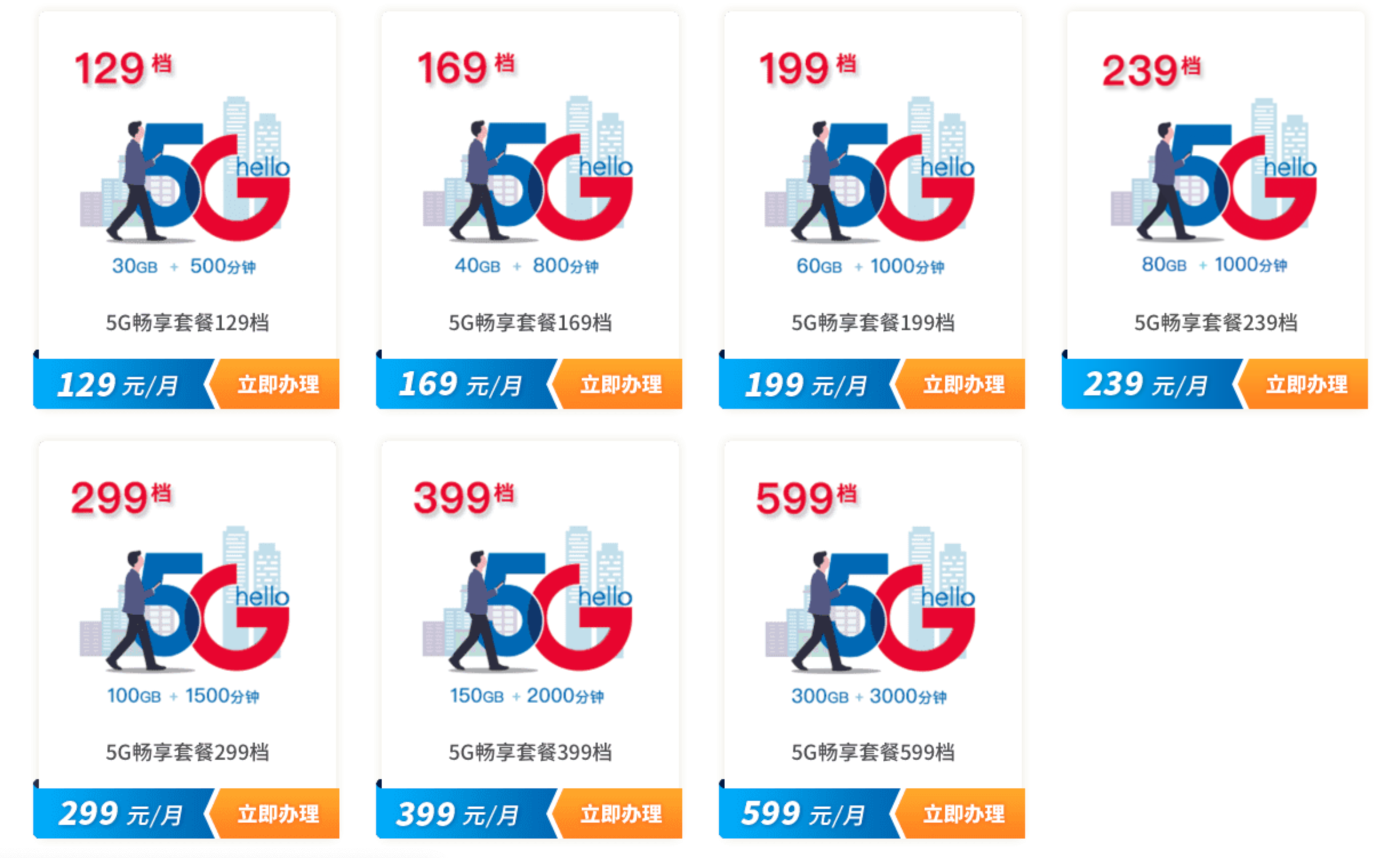 中國電信官網上海地區5G套餐
