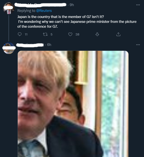 有人質問道:“日本還是七國集團的成員嗎?我很困惑為什麼在G7會議的合照中看不到日本首相呢?”下面一名美國人截圖告訴他岸田的位置……