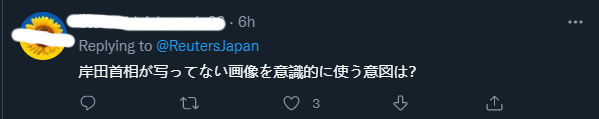 還有日本網民質問路透社日文網:有意使用不顯示岸田首相的合照的意圖是什麼呢?